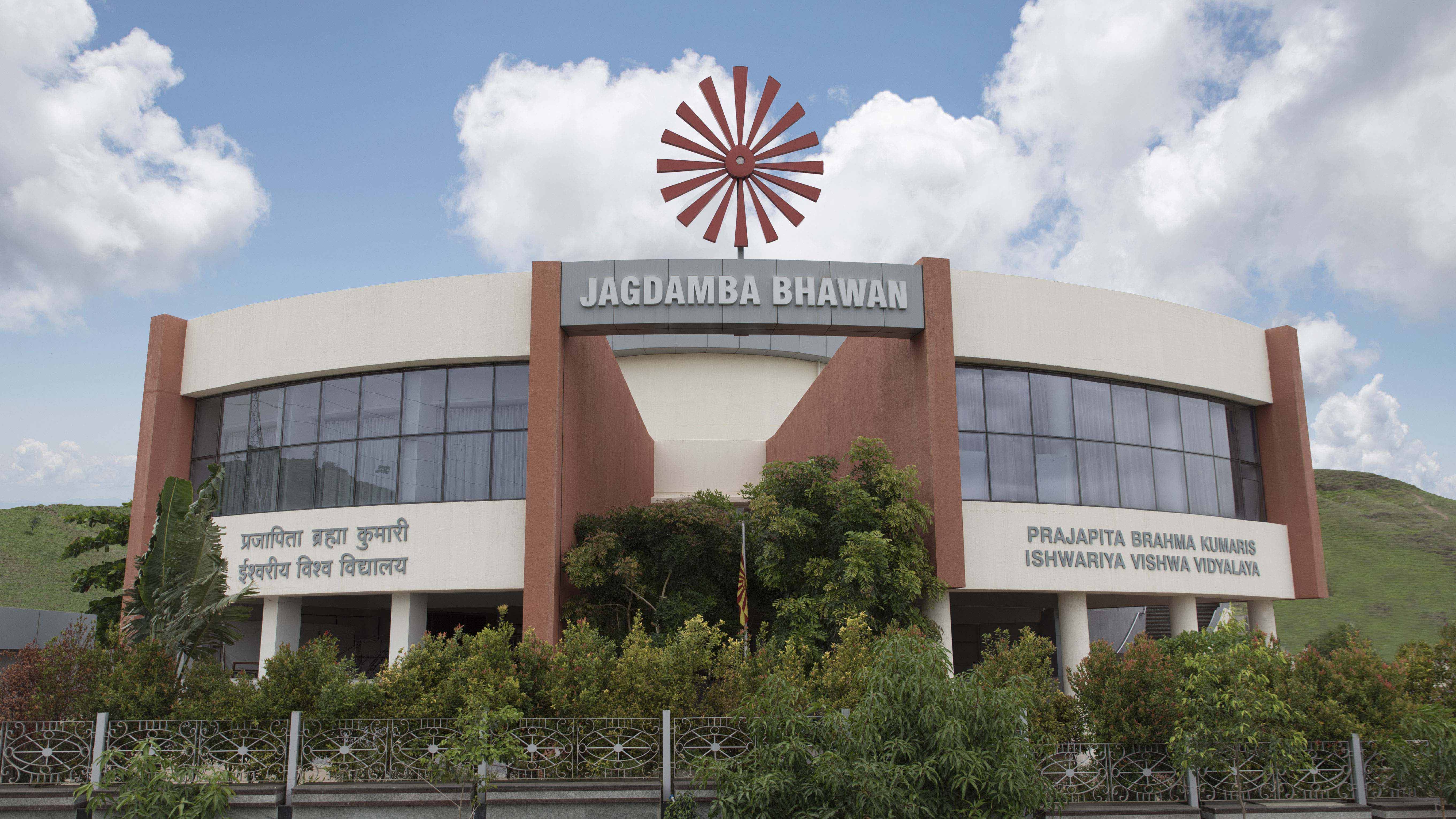 Generally, Bramakumari structures all over the globe, are white in color and with little classical style. The terrain here was sloping and surrounded by hills. So we wished to merge the development with the terrain and not make it stand out from the ground. Hence we decided to do it in earthy colors, instead of white colour. The trusties were very graceful to accept this major deviation. The form of the building was derived from their logo, made horizontal as if it has descended from heaven and settled down on this beautiful terrain. So the shape is circular in asymmetrical form with the main hall in the center and all rooms radiating from the center.