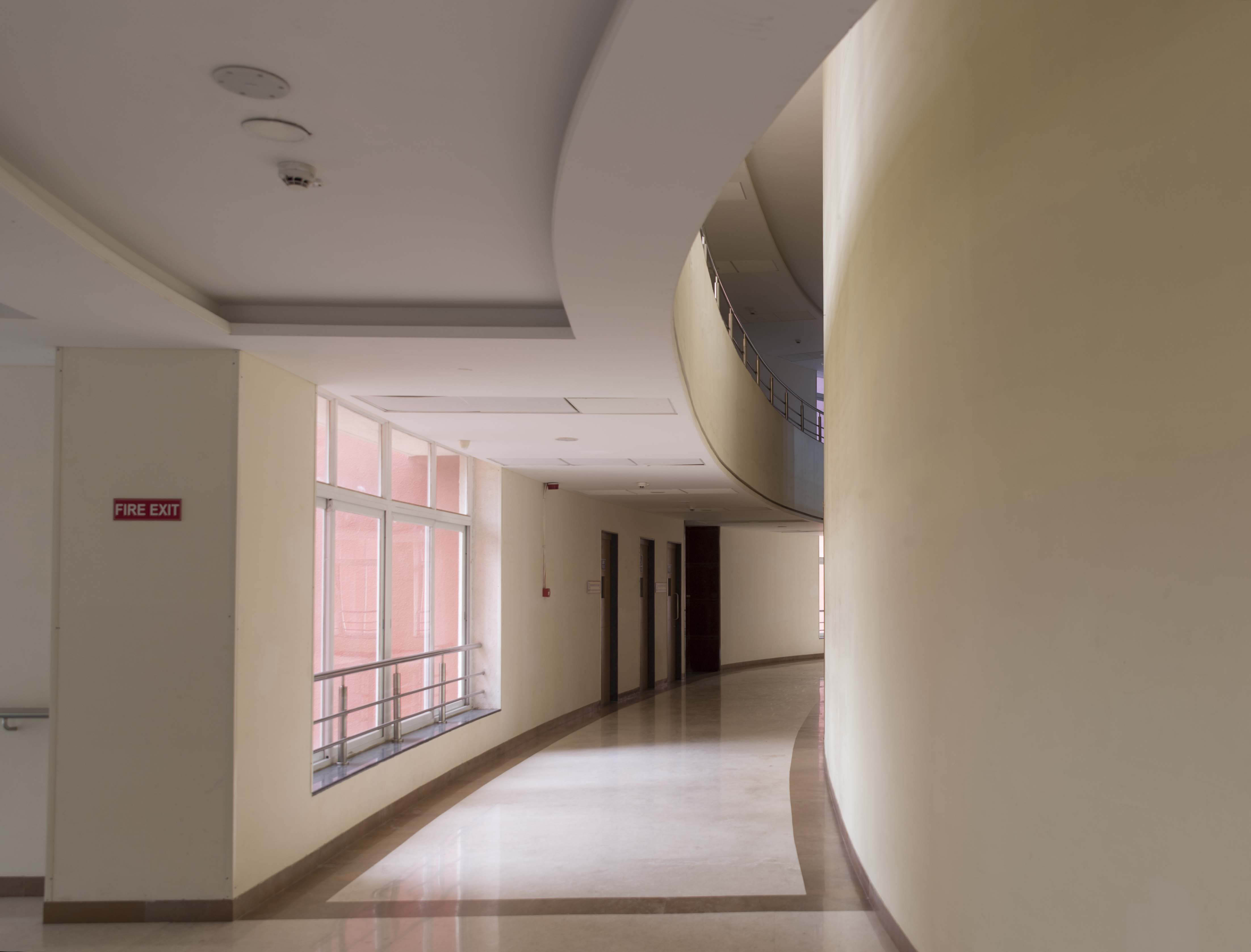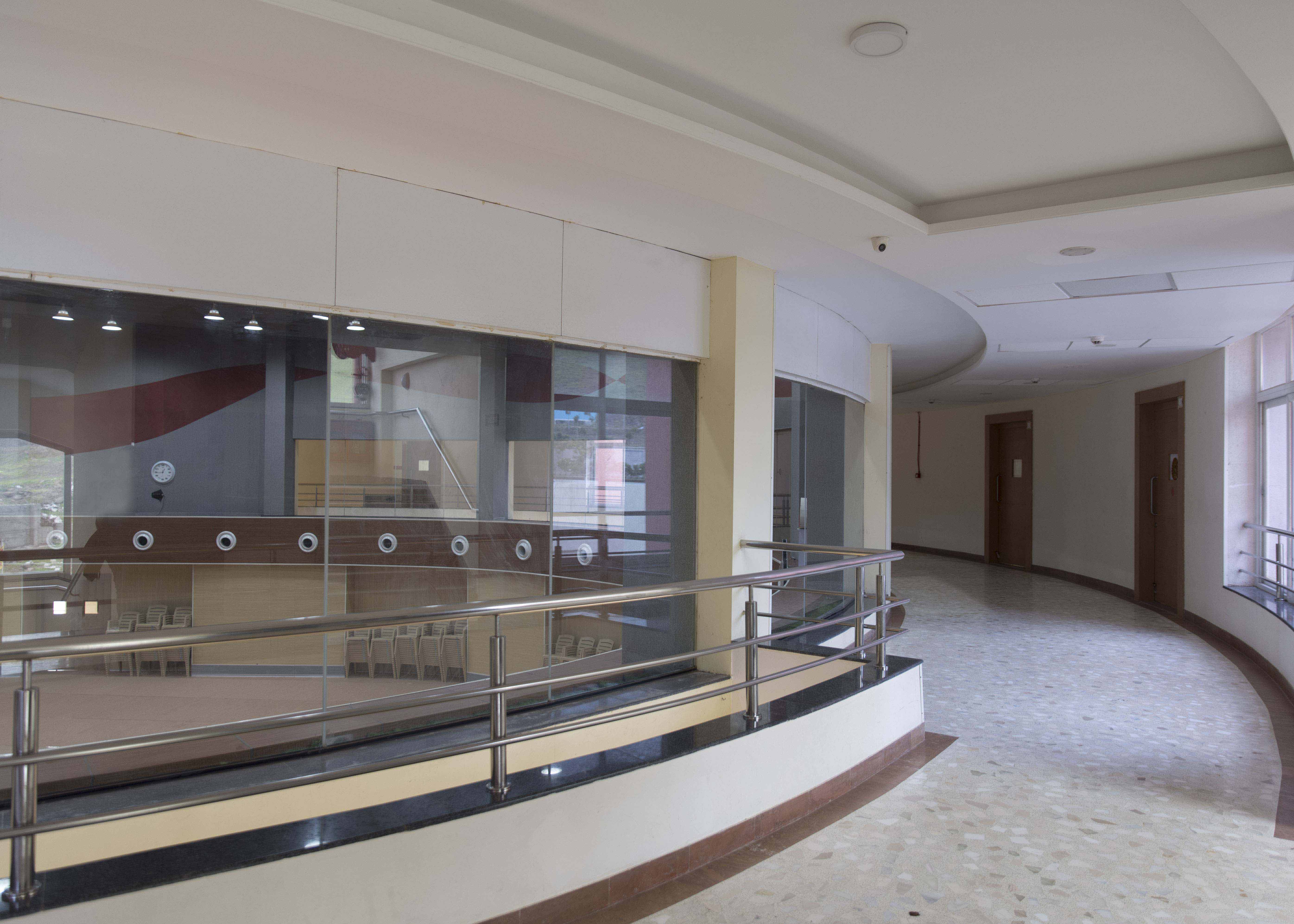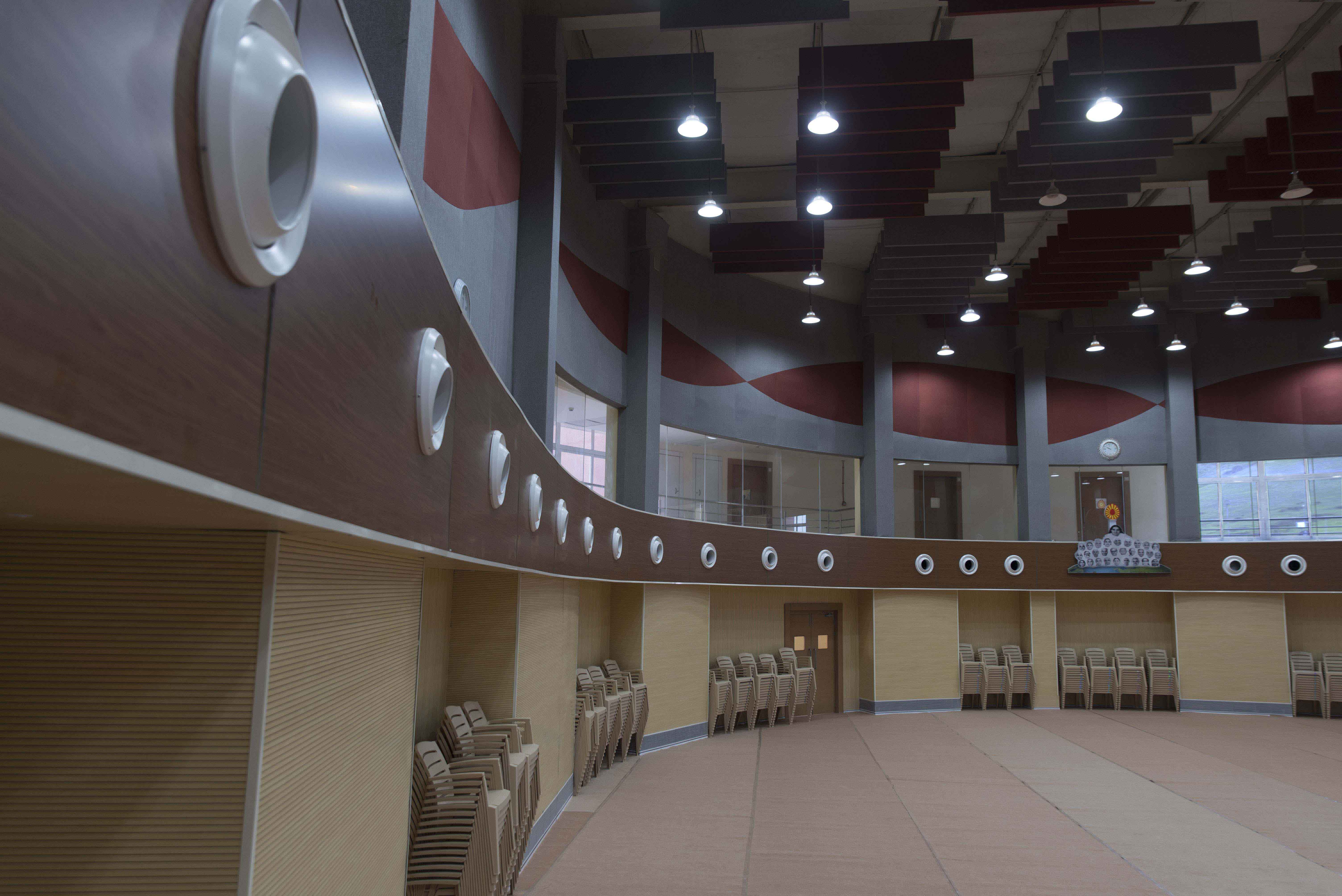 It folds down very naturally as per natural terrain on the west side. The entire area is fully landscaped including the terraces on the first floor. We wish to merge the buildings with the greenery, after the full growth of landscape. Even the roof top above the seminar halls, has small open air amphitheaters with creepers running down from the terrace. Though the entire structure has a complicated geometry, the project was completed within a span of one year, thanks to the humongous efforts of our mentor, late S. Balan, blessings of late Janaki dadiji and above all grace of Brahma Baba. Archicon considers itself blessed to get associated with this Jagdamba Bhavan project.